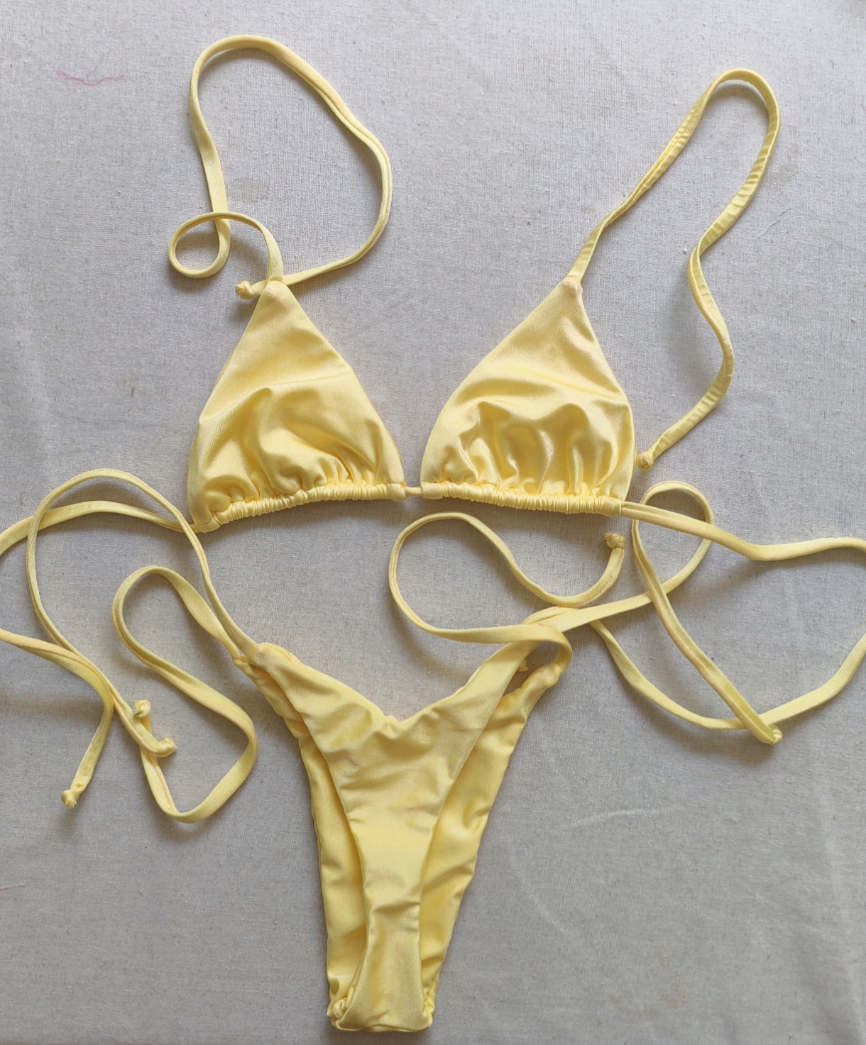 Conjunto Noronha é feito em malha Trilobal com tem uma leve cintilancia.